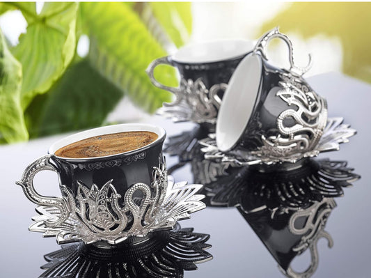 Luxury Set of 6 Turkish Coffee Cups and Saucers