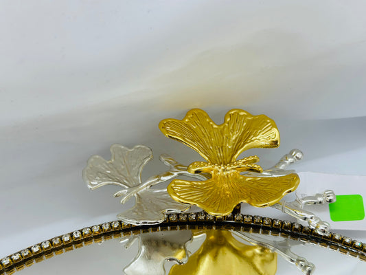 Mirrored Serving Tray with Gold and Silver Metal and Jewels