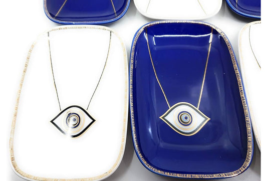 Luxury Bone China Dessert Serving Plates Set of 6 Pieces (Evil Eye Design - Rectangular)