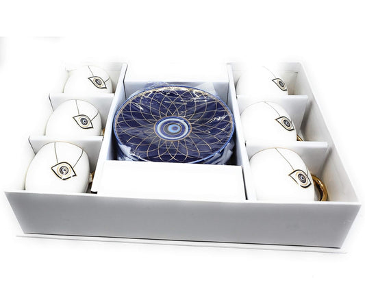Luxury Bone China Teacup Set of 6 Cups + Saucers Evil Eye Design