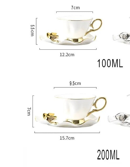 Golden Wings Collection: Porcelain White Mugs with Butterfly Elegance – Set of 6 (100ml & 200ml Options)
