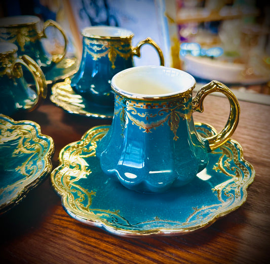 Turquoise Elegance: Gold-Rimmed Porcelain Espresso Sets for a Refined Coffee Ritual (set of 6)