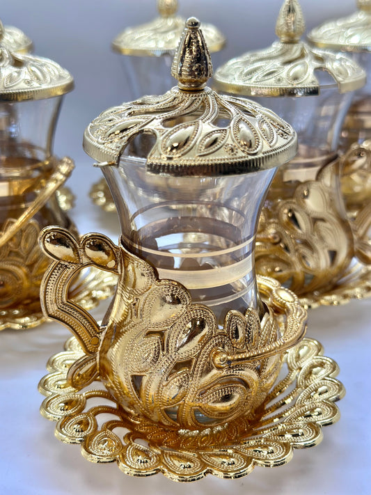 Turkish Delight: Handcrafted Glass Teacups with Metallic Accents Set. SALE