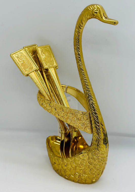 Decorative Golden or Silver Swan Spoon Holder with 6 spoons