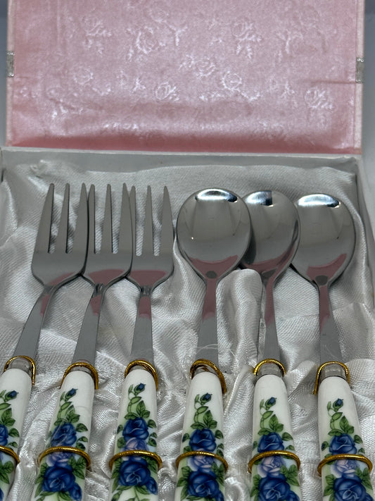 Elegant Dessert Cutlery Set with Floral Design (3 Spoons & 3 Forks) in Gift Box