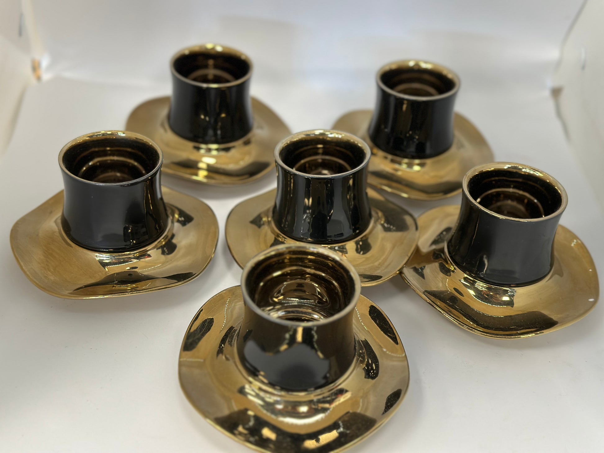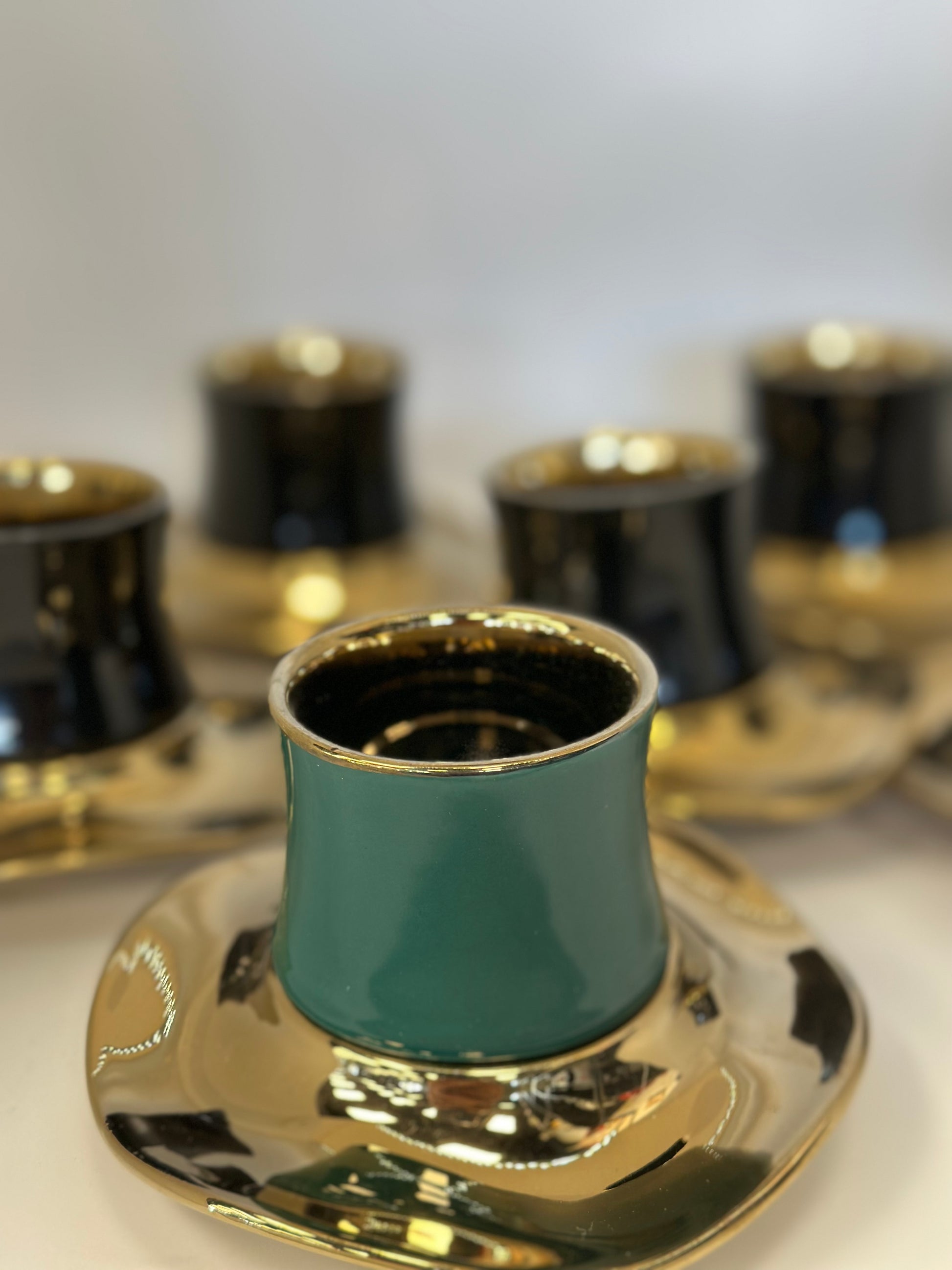 With their unique design and luxurious gold finish, these espresso cups are sure to elevate your coffee-drinking experience to the next level. The navy, green, and black colors provide a sophisticated and modern look that will complement any home decor.