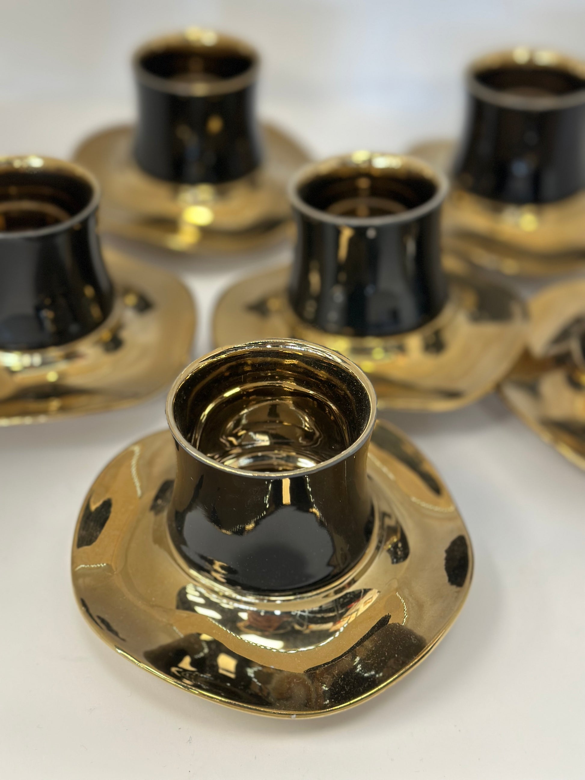 Experience the perfect cup of espresso with these unique gold cups that are sure to impress. Order now and enjoy your coffee in style.