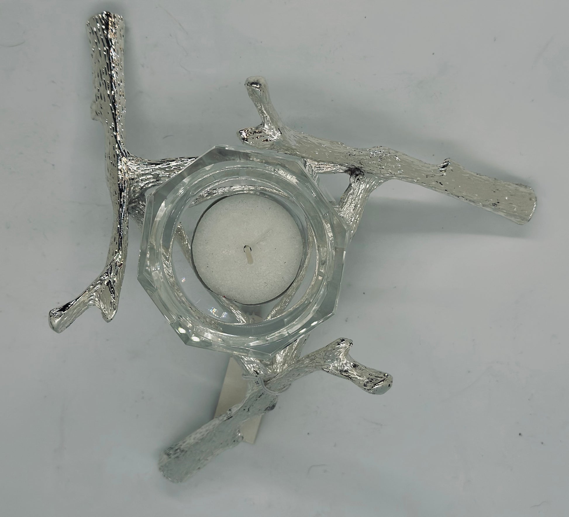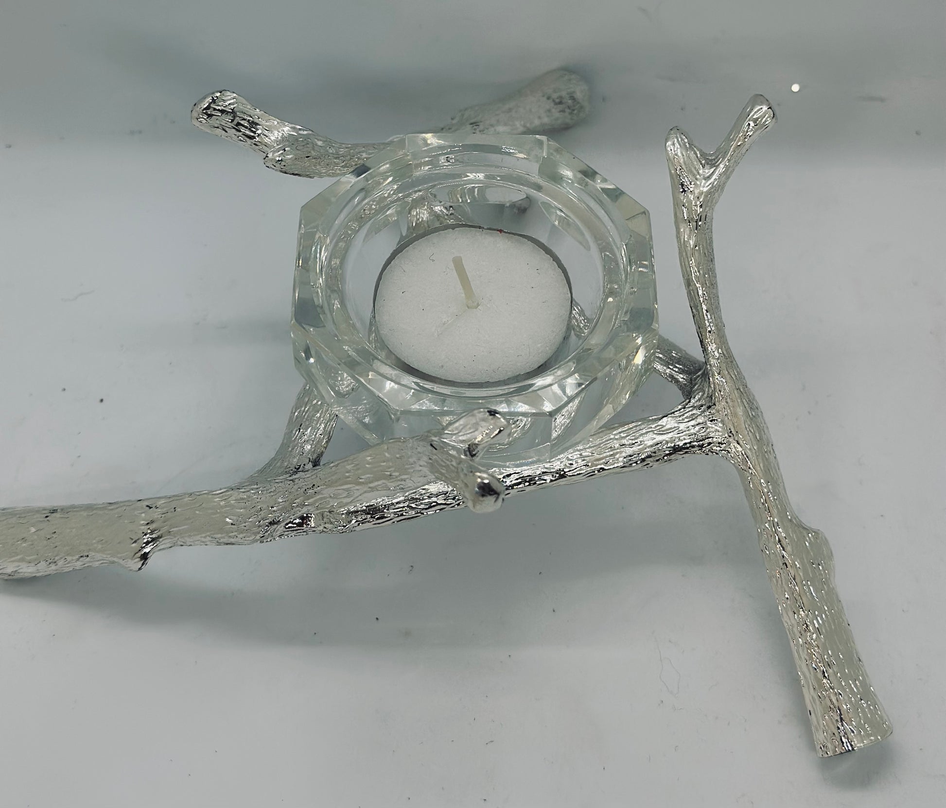 Introducing a unique and elegant metal candle holder in the shape of a twig branch. This stunning candle holder is available in both silver and gold, allowing you to choose the perfect color to complement your home decor.