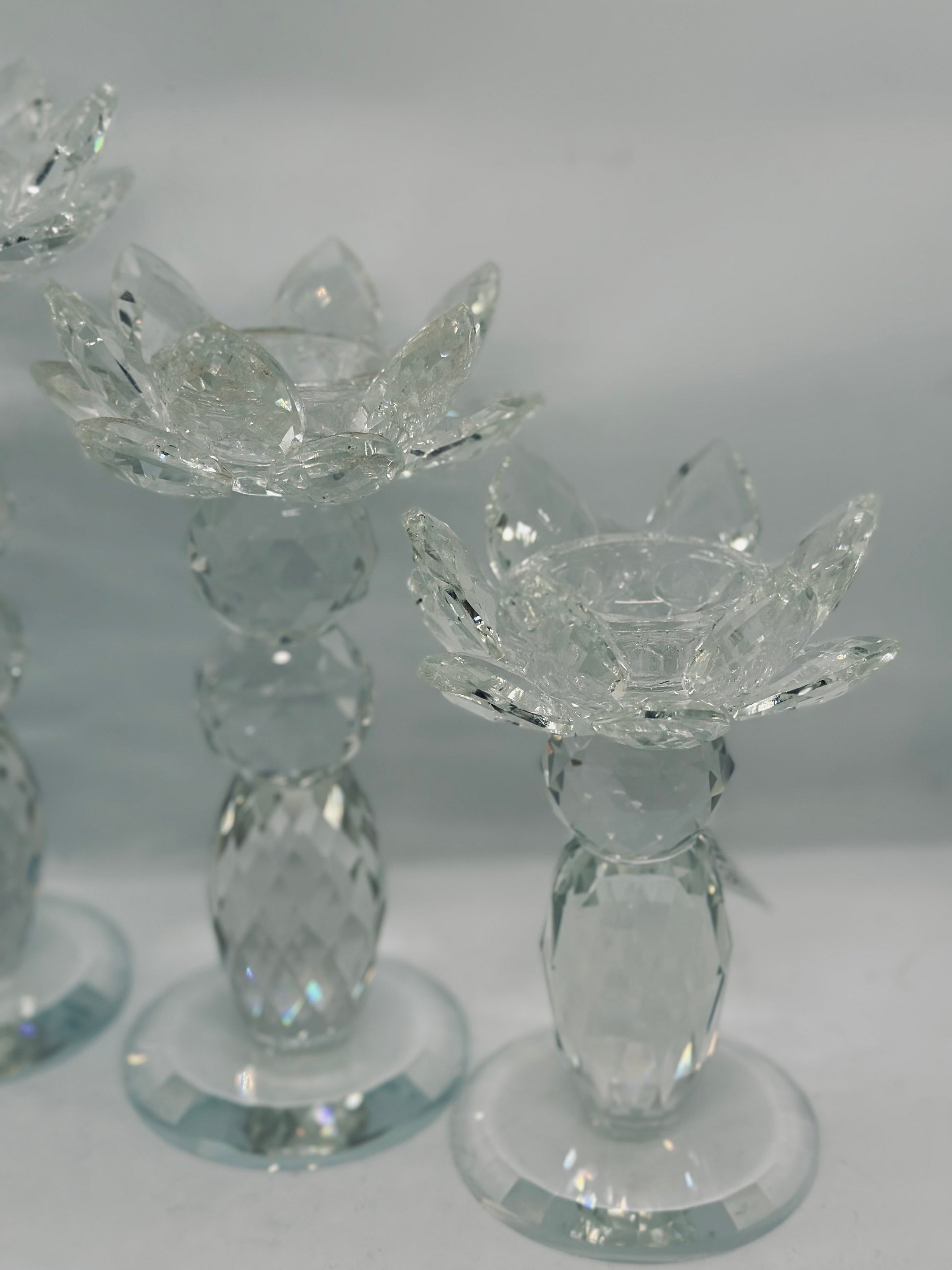 Whether you're hosting a dinner party, relaxing in your living room, or simply enjoying a quiet evening at home, these crystal flower candle holders are sure to enhance the ambiance of any space.
